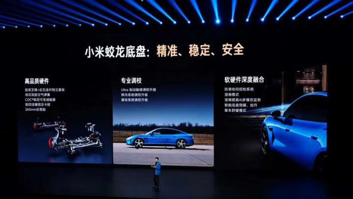 底盘方面,新一代SU7全系升级为“小米蛟龙底盘”,总体上来说转向愈加机灵,操控更精确。