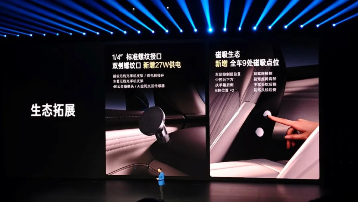 拓展性方面,前中控面板的两处螺纹接口新增了27W供电,支柱接入充电式手机支架,整车新增了9处磁吸点位,银河国际不错磁吸小米官方推出的玩偶、头枕、腰靠什么的。