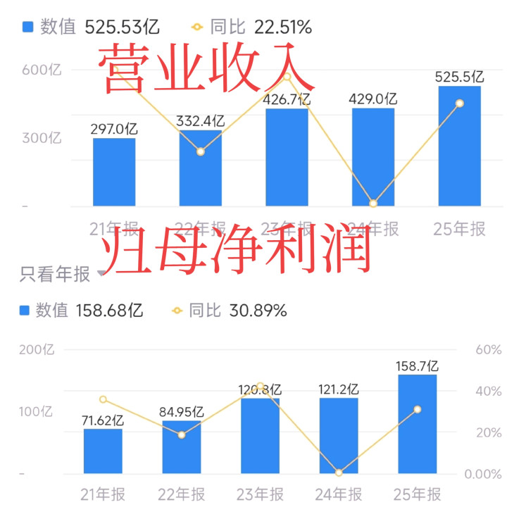 农夫山泉2025年完了营业收入525.53亿元,同比增长22.51%;完了归母净利润158.68亿元,同比增长30.89%;净利润增速比营收增速快8.38个百分点,完了了高质料增长。