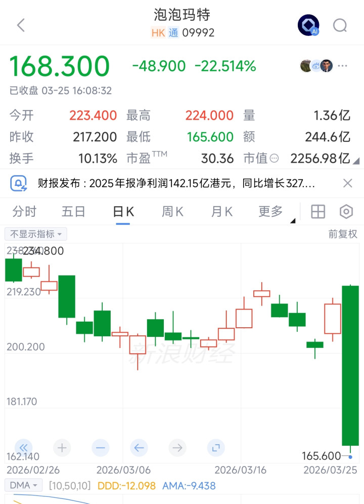 农夫山泉、泡泡玛特别消耗股2025年几乎赚爆了,农夫山泉净利润159亿元,泡泡玛特净利润128亿元,它们的营业收入、净利润等中枢蓄意规画齐创造历史新高。不外,泡泡玛特在公布功绩后,股价大幅跳水大跌22.5%,市值可谓弃世惨重。