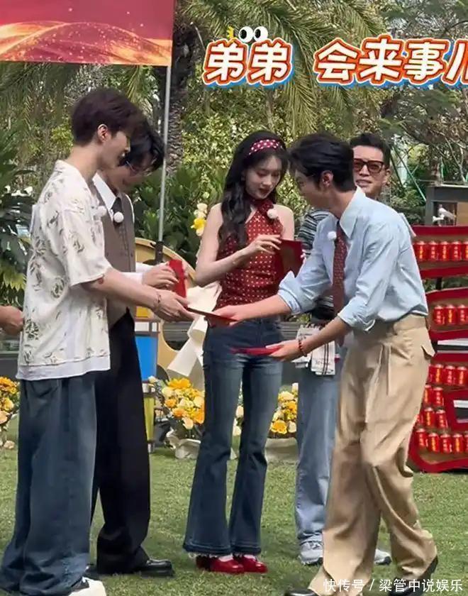 孟子义此次的造型,险些是行走的东谈主体比例尺。170cm的她穿红色挂脖复旧上衣配高腰牛仔裤,大海浪配红唇,港风氛围感拉满,视觉身高直逼180cm。最绝的是背后那块节目构成例用的名牌,宽度约10-15cm,贴在她腰上果然全皆障翳腰腹,侧面镜头里腰身显着窄一圈,网友捉弄“撕名牌变名牌罩腰”,生图里腰线照样清醒紧致。
