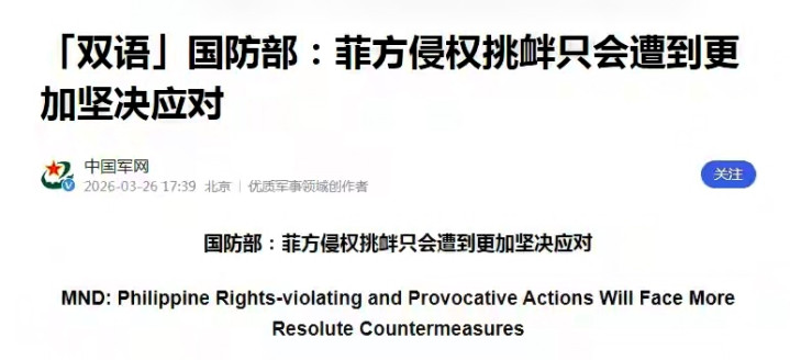 就在这25国雄师在海上摆姿势的本领,中国两大部门径直甩出了一份中英双语通牒。在意“双语”这个细节,这不仅是说给马科斯听的,更是径直把话撂到了海外社会:中国的底线就在这儿,谁也别装听不懂。