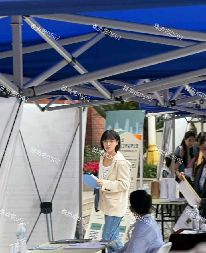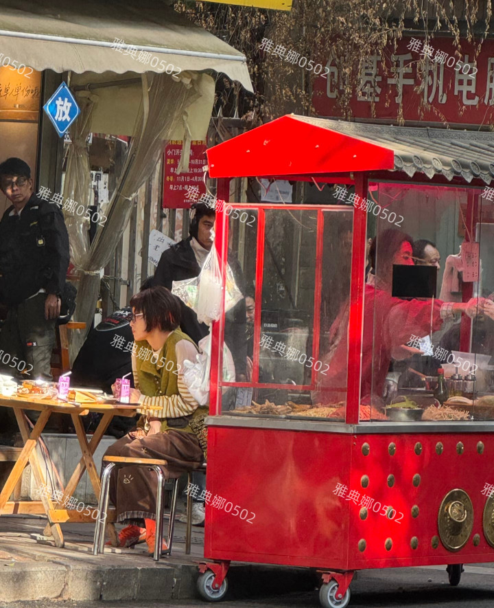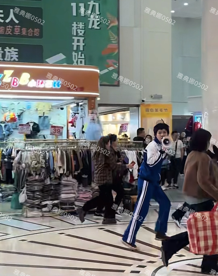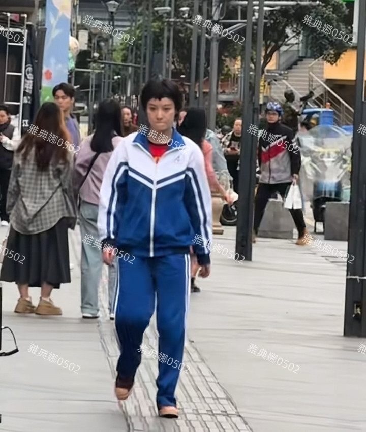 在成齐的九龙市集遭受倪妮在这里拍戏,她梳了一个迥殊短的领路头,一稔一套蓝白相间的投诚,一看等于中学生的打扮,拍戏的时辰她手里拿着一个大喇叭,显得卓越的病笃和焦躁,不休的高声高喊挥动手臂,让傍边的东谈主马上离开,但她喊了什么有点儿听不清。