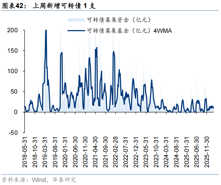 上周一级市集募资金额环比回升。上周新增IPO2家,首发召募资金5.5亿元;上周新增定增4支,募资437.9亿元,新增可转债1支,募资5.76亿元。