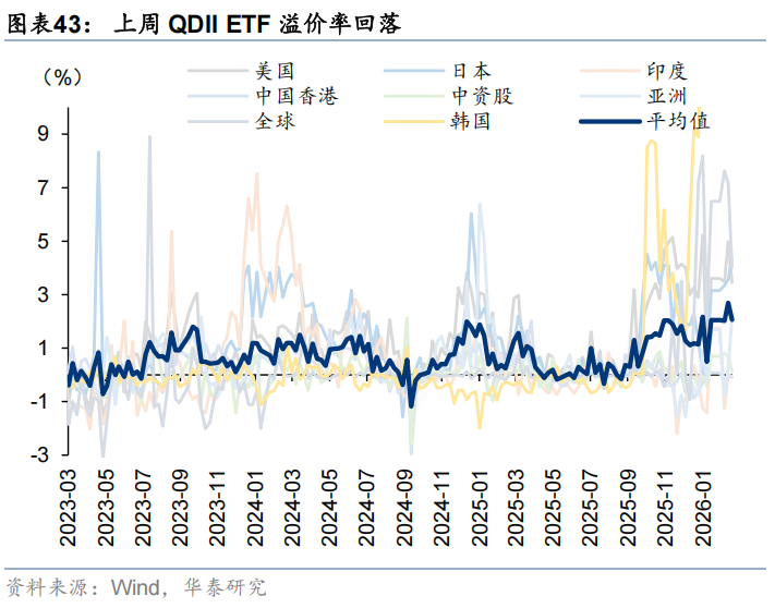 QDIIETF上周净流出2.06亿元,主要净流出中国香港。从溢价率来看,QDIIETF溢价率环比回落。