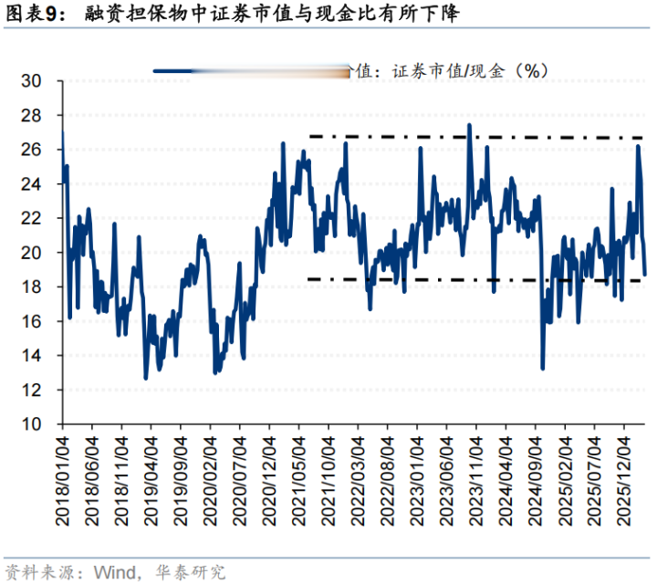 尽管外围风险此前已有演绎,但往返型资金在前期推崇出较强的握仓惯性,上周投资者对地缘政事订价普及,市集波动率放大,上周五融资资金单日净流出超150亿标记着资金情怀出现回落,触发融资融券的去杠杆程度,担保比例从290%的历史高位马上回落至278%的岁首水平,后续进一步出清需不雅察融资去杠杆幅度;其次,存量资金的结构博弈正由“紧迫”转向“堤防避险”。在省略情趣升温的布景下,设立型资金的审好意思发生了显赫回荡:测算数据浮现,基金仓位出现向破钞、金融等标的腾挪的倾向,资金初始在堤防性品种中寻找新的安全旯旮。此外,宽基ETF在净流出9周后转向小幅净流入,上周宽基ETF净流入95亿元。