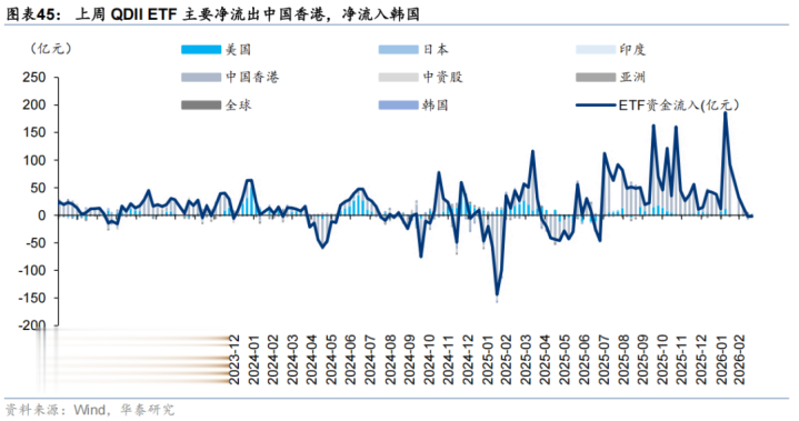 上周北向资金日均往返额回落至2930亿元。以EPFR统计的设立型外资中,3月11日-3月18日,设立型外资净流出36.6亿元,其中主动设立型外资净流出6.2亿元,被迫设立型外资净流出30.4亿元。