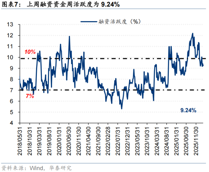 杠杆资金:上周融资资金流出183.99亿元,融资往返活跃度回落至9.24%,市集平均担保比例环比小幅回落至278%,结构上,融资资金净流入电子、基础化工及轻工制造等板块,净流出有色金属、国防军工及通讯等板块;