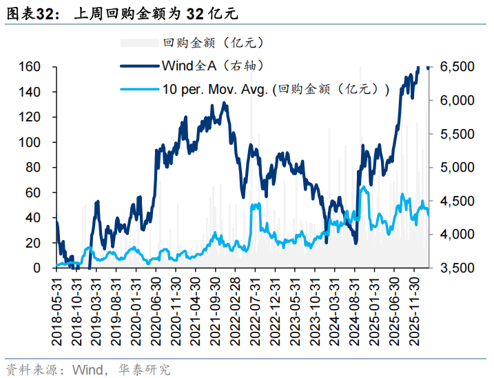 上周二级市集要紧鼓动净减握78亿元。解禁市值方面,本周解禁市值为242亿元,供给端压力环比回落。回购方面,上周二级市集股票回购金额32亿元,回购预案金额为35亿元,回购金额环比上周回升。