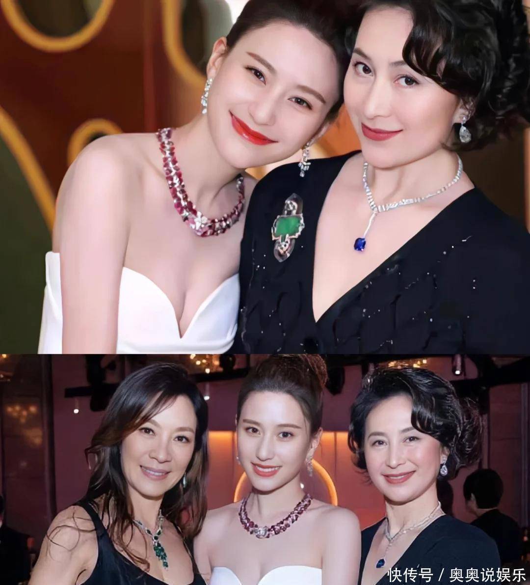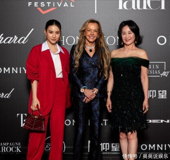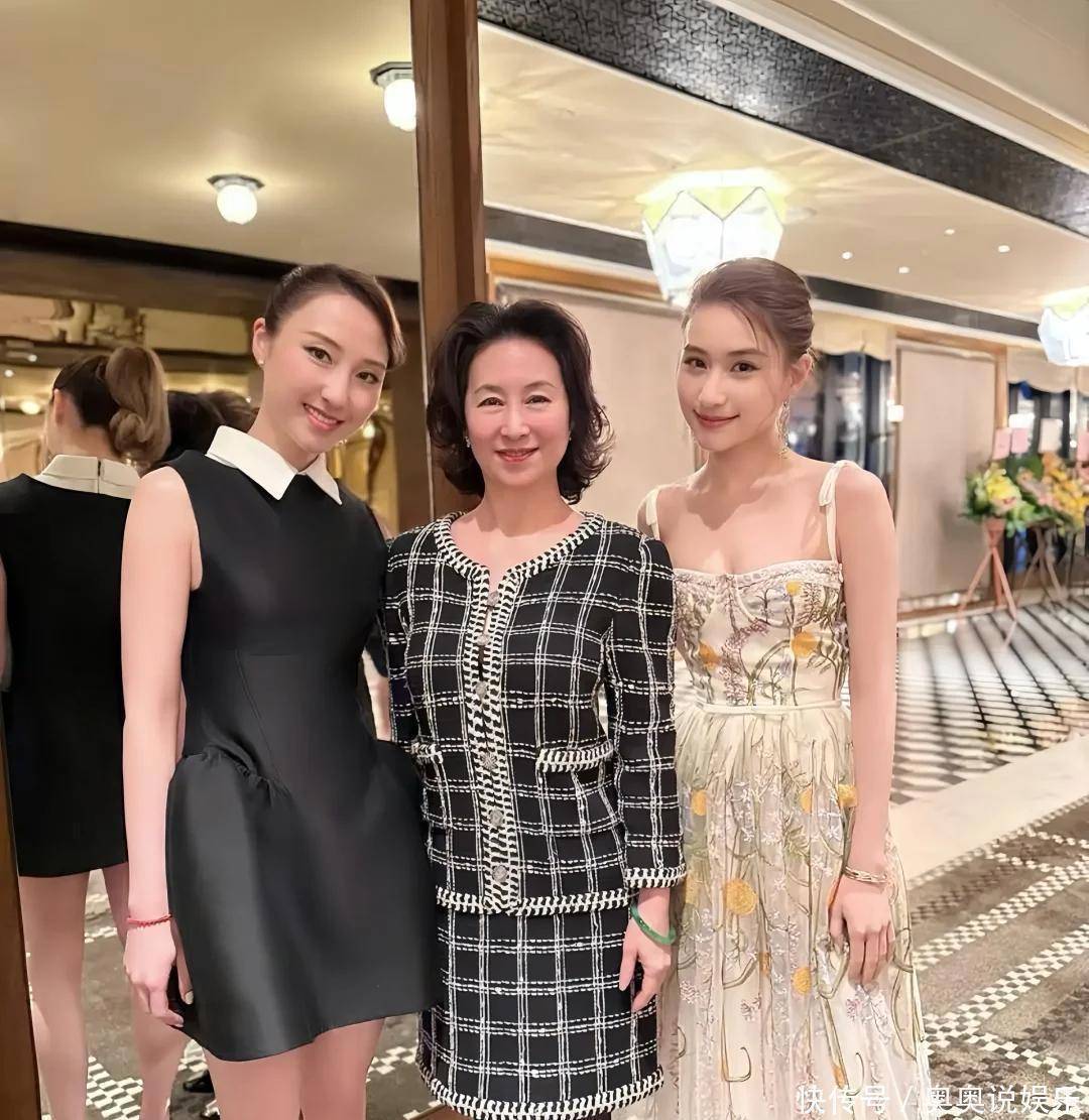 像片中,卡罗琳站在中间,金流配刺绣套装,气场十足。何超琼则穿戴一袭乌绿色露肩礼裙,站在一侧,薄纱羽毛的盘算让她显得额外优雅。