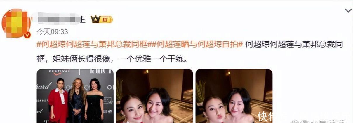 3月27日,何超莲在酬酢平台上,发布了一张亲密的自拍照,配文“我的漂亮姐姐”,蓦地让#何超莲晒与何超琼自拍#的话题火了起来,辩驳区里尽是“太像了”“颜值天花板”的刷屏声。