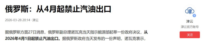 俄罗斯这边也没闲着,政府凯旋晓谕谢绝汽油出口,格外在伊朗干戈让油价飙涨的情况下,这一步凯旋让全球原油和制品油市集孔殷讨厌加剧。