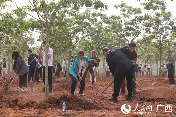 东谈主民网南宁3月27日电(刘璐瑶)春回地面,万物复苏,恰是植树造林的好时节。3月26日上昼,2026年自治区党政军带领与首府各界代表义务植树行动在南宁植物园(青秀山)紫花风铃园举行。全球挥锹铲土、培土浇水,共同种下紫花风铃木1600多株。