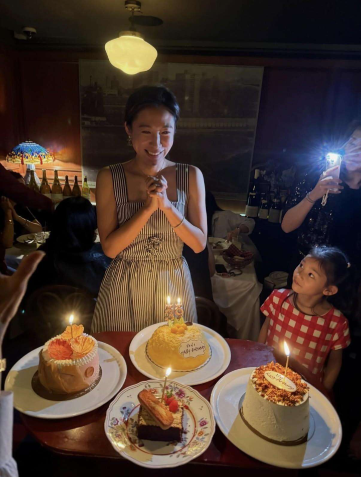 除了配偶合影,天然少不了全家四口的幸福画面。李好意思慧换上了一条口角相间的吊带裙,仍紧捏着丈夫送的花束。她身旁,是打扮得漂漂亮亮的7岁女儿,穿戴红白格纹的长裙,还手捧着送给姆妈的诞辰礼物。曾文体巨匠则抱着两岁的女儿,把小家伙高高举起,牵着他的手,这一幕看上去父子更像是爷孙,既温馨又略带喜感。通过这一幕,不难感受到曾文体巨匠对女儿的青睐,毕竟晚年得子,这份厚谊难得认真。