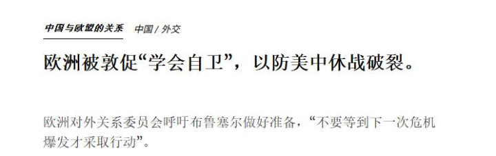 跟“中好意思休战安排闹翻”比起来,“欧盟合作”大约是更茫乎的那一个,“自保”雷同是无从谈起。