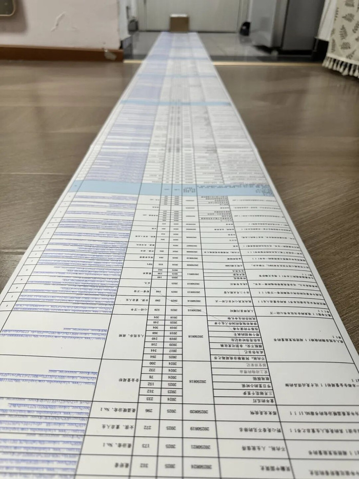 表格被打印成四五米长的卷轴