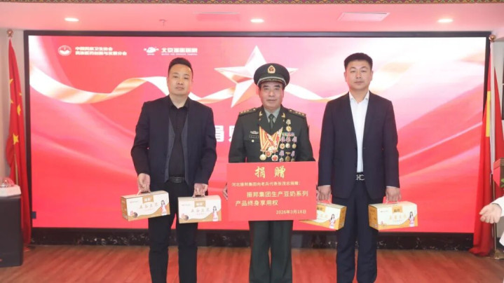 河北振邦集团闫志超总司理亲手将一箱箱全心准备的优质豆乳送到张茂忠英雄的手中,并捐赠振邦集团坐褥豆奶系列家具终身享用权。一份份豆乳,不仅是养分健康的生涯物质,更是千里甸甸的关爱与敬意;而“终身为老兵提供豆乳”的甘愿,更是让这份关爱种植时候,蔼然老兵的岁岁年年。