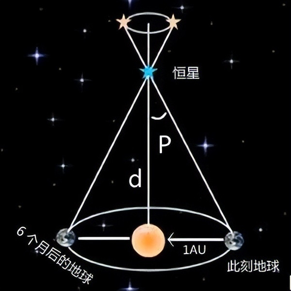 当地球区分位于太阳的两头时,不雅测者会发现,这颗恒星在远方的布景星空上会出现一个轻微的位置偏移,这个偏移量所对应的角度,就是三角视差角,用字母P默示。